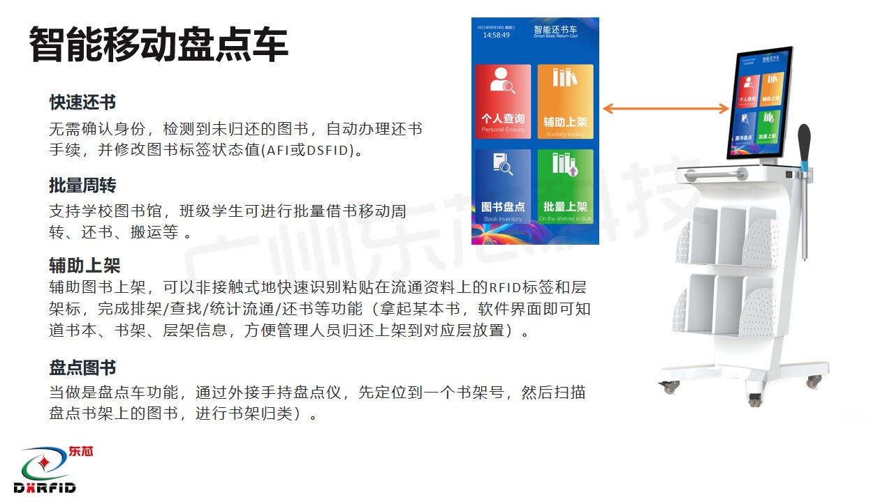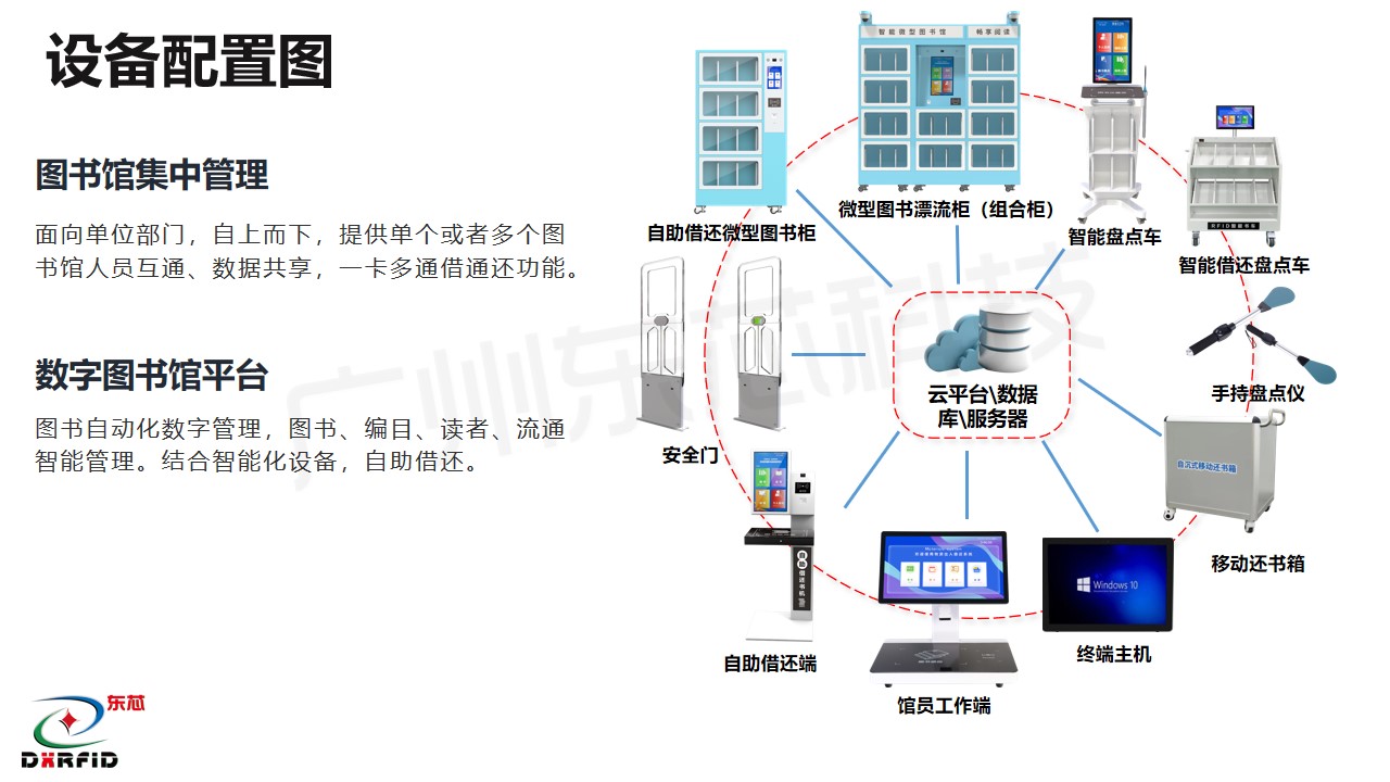 东芯科技智慧图书馆解决方案基于射频识别技术( RFID ),在物联网环境下,以云计算技术为基础,以智能化设备为手段,实现书书相联、书人相联、人人相联,打造智慧书联网、多馆互通、多元交互,提高图书、人员的管理效率、优化公共阅读资料的利用率,为用户提供智慧化服务。