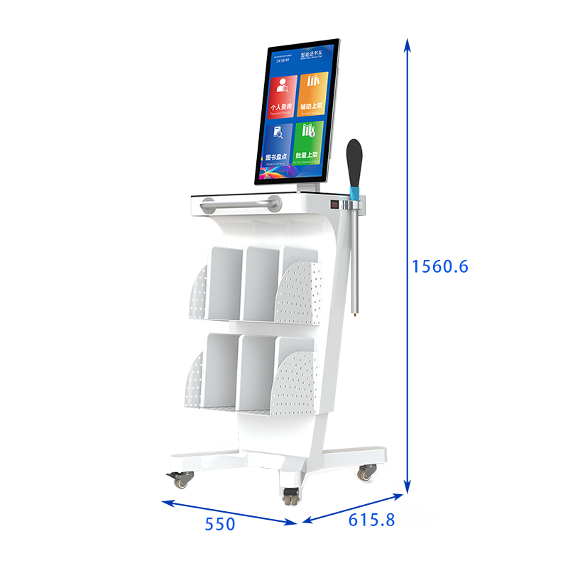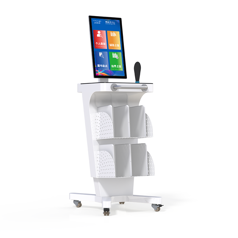 DPDC215 智能盘点车是馆藏书籍管理的新型 RFID 智能化设备,配备 21.5 寸触摸显示屏,简单易操作的人机交互界面。它可以辅助工作人员对图书馆新书入馆、上架、层架变更、书籍盘点等,有效的提高馆藏精准化、实时化和高效化。本产品可选配搭载读写器一体机,或者多通道读写器和 ABS 智能书架天线组合,通过快速还书功能实现高效还书。车主要功能:快速还书、辅助上架、图书盘点、批量上架。本产品广泛应用于公共图书馆、中小学图书馆、档案管理等。